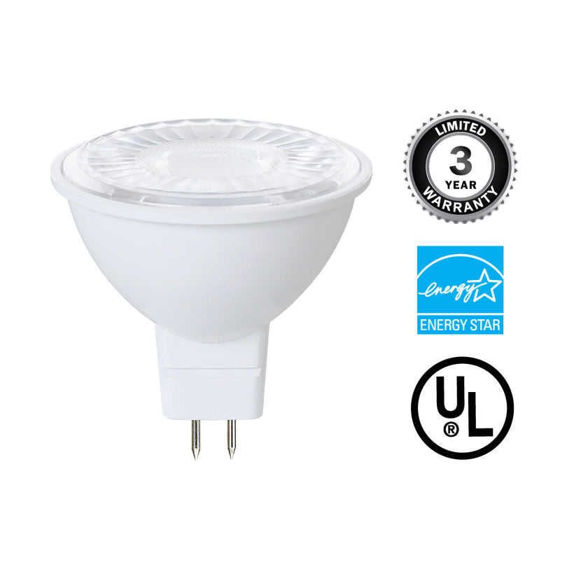 Bring efficient, dependable illumination to recessed cans, track heads, and focused accent-lighting applications with this MR16 Directional (Wide Spot) LED Light Bulb, featuring Dimmable, 7 W, and 12 V.